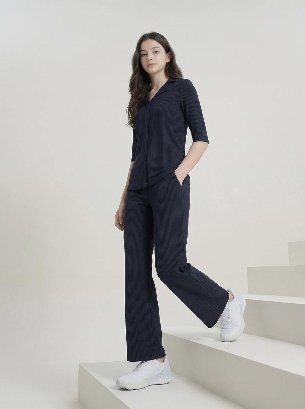 • 세로 골지 텍스처로 시각적인 슬림 효과