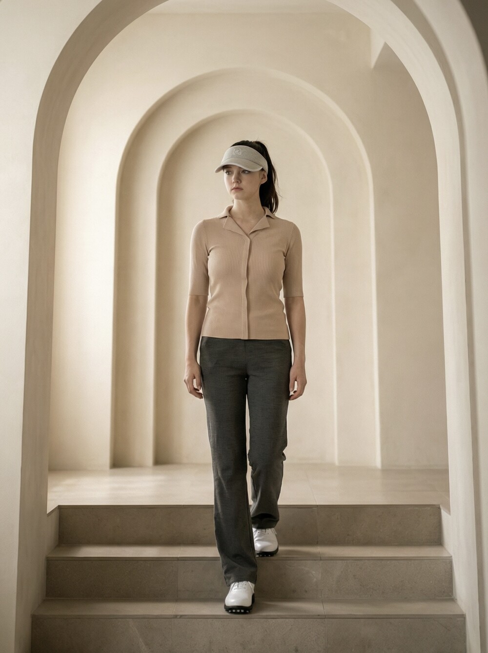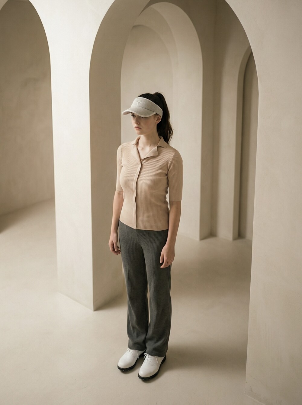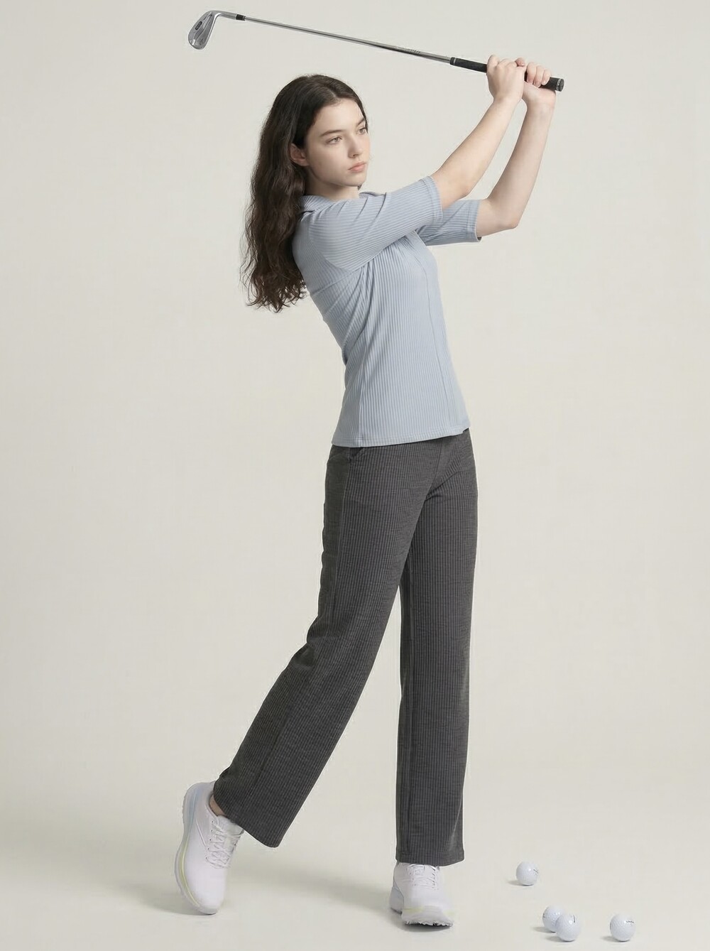 신축성 있는 니트 원단으로 스윙, 보행 등 움직임이 많은 골프 활동에도 편안하며